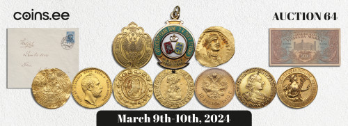 Coins.ee mündi- ja filateelia oksjon 64 on pakkumisteks avatud